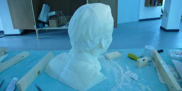 Een moederdag cadeau is het geen wat de opdrachtgever wilde. Het leek hem wel mooi om haar een buste te geven met zijn eigen hoofd.